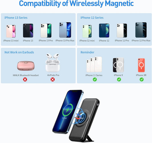 Magnetic Wireless Portable Charger Power Bank, 20000Mah with 7.5W Wireless Charging and 20W USB C Power Delivery Battery Pack, Smart LED & Kickstand, Only Compatible with Iphone 14/13/12 Series